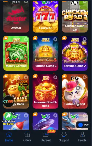 - Card Games: Teen Patti, Rummy, Poker